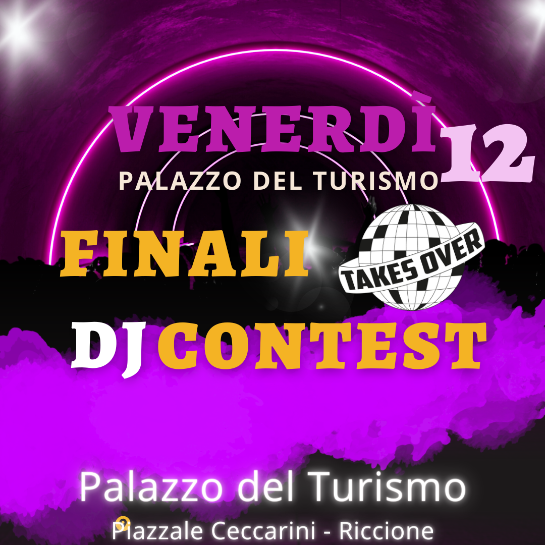 DJ CONTEST le finali Palazzo del Turismo in Piazzale Ceccarini, Riccione dalle ore 11.30 alle 13.00 e dalle 16.00 alle 19.00 le performance dei dj finalisti del dj contest Takes Over 2023. www.takesover.it